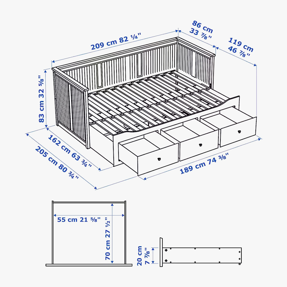 Day-bed W 2 Drawers/2 Mattresses, White Firm