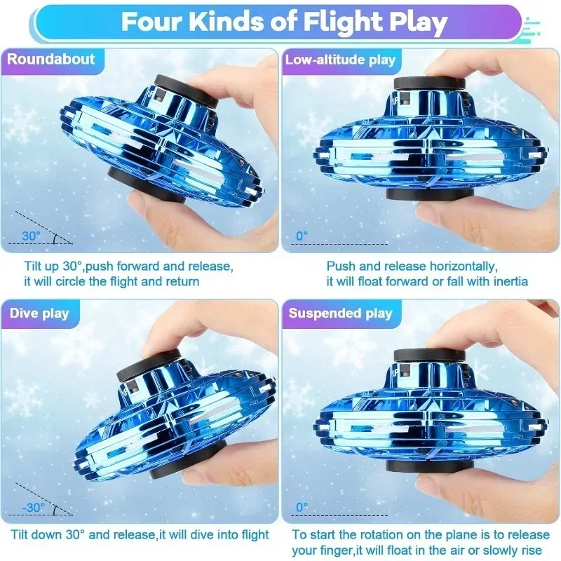 Experience endless fun with this portable, hand-controlled flying spinner! Featuring 360° rotation, colorful LED lights, and a rechargeable battery, it’s perfect for tricks, toss-and-return play, or friendly challenges with friends. Durable, lightweight, and safe for indoor or outdoor use — just charge, toss, and watch it fly!